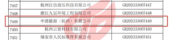 • 2023年12月28日,全國高新技術企業認定管理工作領導小組辦公室發布《對浙江省認定機構2023年認定報備的高新技術企業進行備案的公告》,中國能源工程集團有限公司(以下簡稱“中國能源工程集團”)所屬中清能源(杭州) 有限公司(以下簡稱“中清能源”)順利通過國家高新技術企業認定證書編號:GR202333007449
