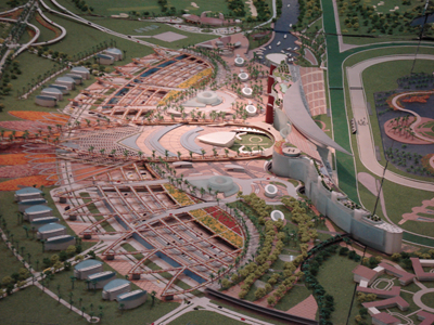 我公司承擔了該項目的設(shè)計工作。整個造型為雙持展開的老鷹,翅長1335m,頭尾長387m,建筑造型十分壯觀。