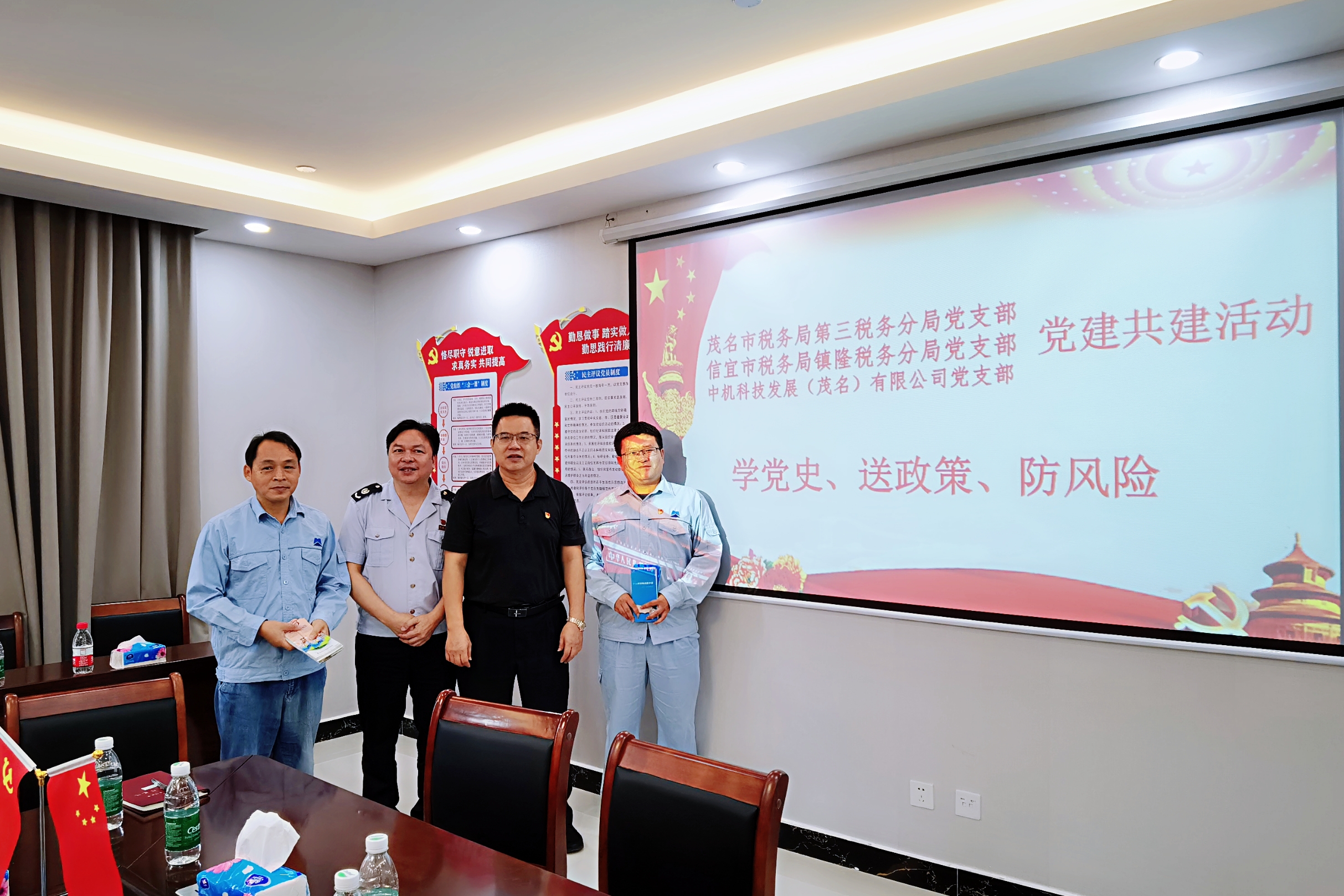 • 為認真貫徹落實習近平總書記在黨史學習教育動員大會上的講話精神,引導黨員做到“學史明理、學史增信、學史崇德、學史力行”。831日,中國能源工程集團中機科技發展(茂名)有限公司黨支部與茂名市稅務局第三稅務局黨支部、鎮隆稅務分局黨支部以“學黨史、送政策、防風險“為主題,開展黨建共建活動。